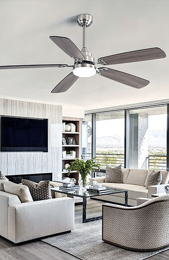 DC motor ceiling fans are the most energy-efficient option, using up to 70% less electricity than traditional AC motor fans. Look for fans with the ENERGY STAR certification, which meet strict efficiency guidelines. Fans with larger blade spans (52-60 inches) typically move more air while using less energy than smaller fans at higher speeds. Features like LED integrated lighting further improve efficiency. Our team can recommend specific energy-efficient models based on your room size and cooling needs.